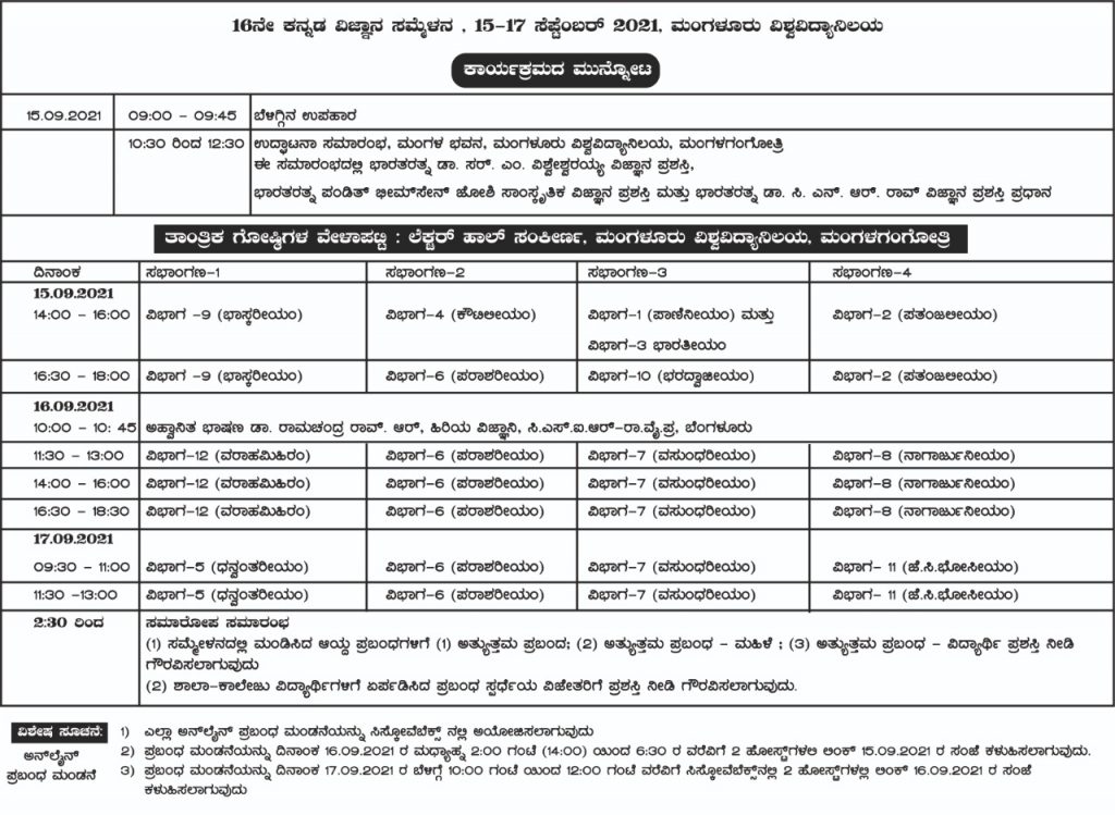 ವಿವಿಧ ವಿಷಯಗಳ ಪ್ರಬಂಧ ಮಂಡನೆಯ ದಿನಗಳ ವಿವರಗಳು ಕೆಳಗಿವೆ